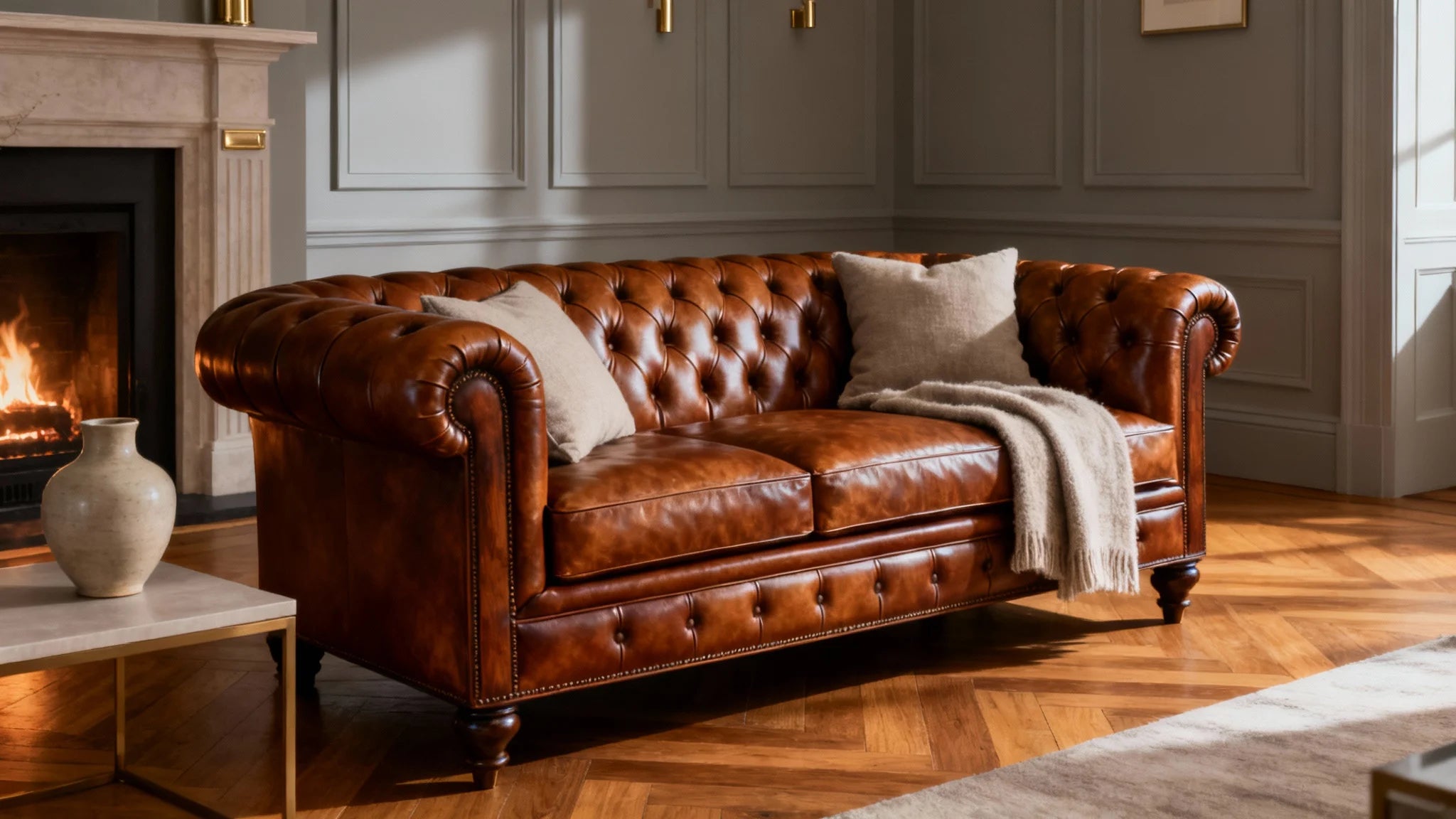Every Chesterfield sofa and leather armchair we create carries the hallmark of British design tradition, celebrated for its distinctive deep button tufting, classic rolled arms, and enduring silhouette. Paired with the finest raw materials, including solid hardwood frames and genuine Italian leather, each piece becomes more than just furniture—it is an heirloom, a centrepiece, and a story woven into the fabric of your home.