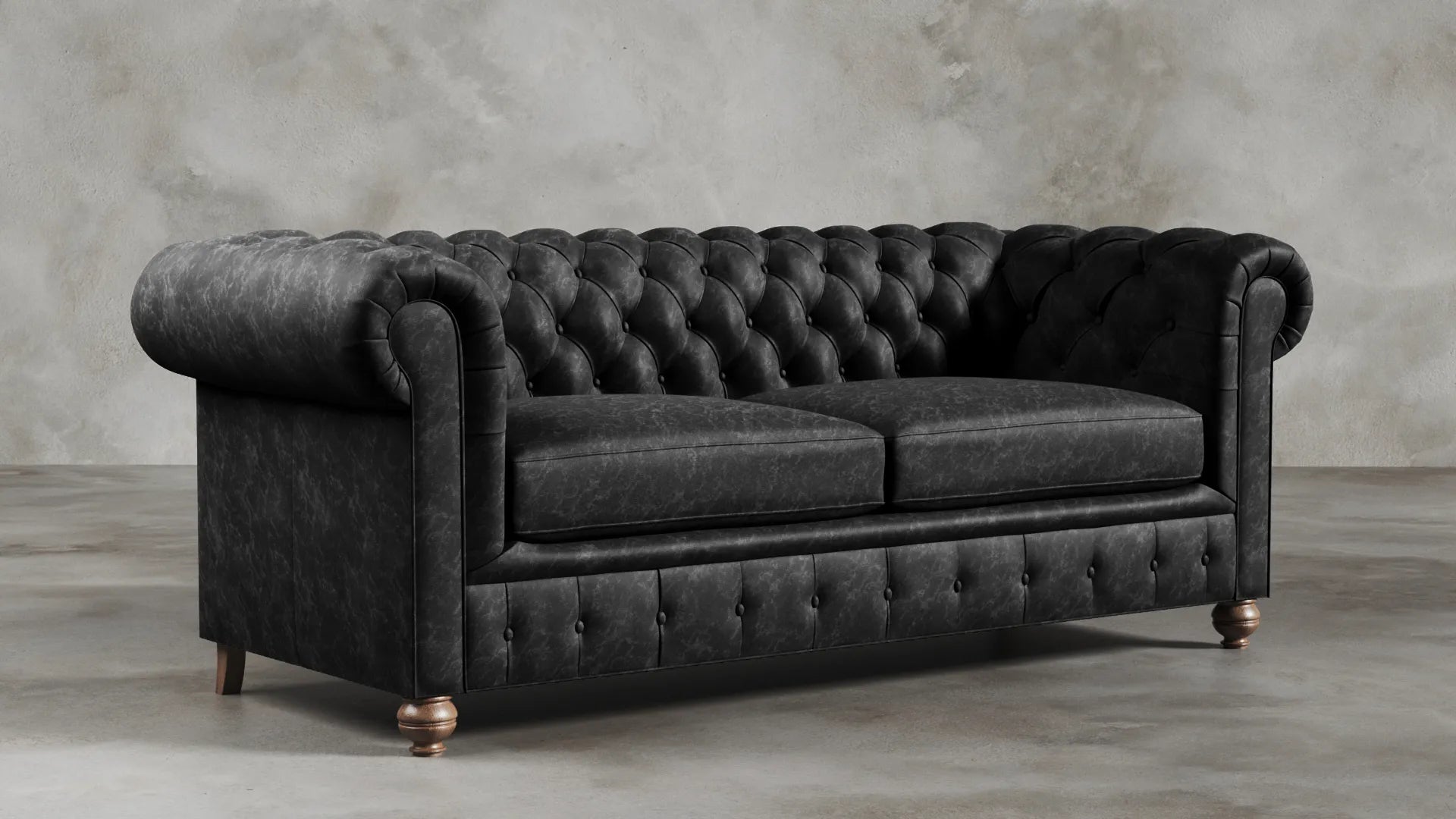 Handcrafted in Britain with meticulous attention to detail, this two seat leather sofa exudes timeless elegance. Constructed from solid hardwood for lasting durability, it's upholstered in genuine Italian leather, offering a rich, luxurious feel. The classic vintage leather chair design, featuring deep button tufting and scrolled arms, brings a touch of heritage to any space. Perfectly sized for intimate seating, this leather armchair is ideal for those who appreciate high-quality real Italian leather furniture. Elevate your decor with this iconic leather chair, blending tradition with modern comfort. A true investment in craftsmanship, it's more than just a real Italian leather sofa—it's a statement piece