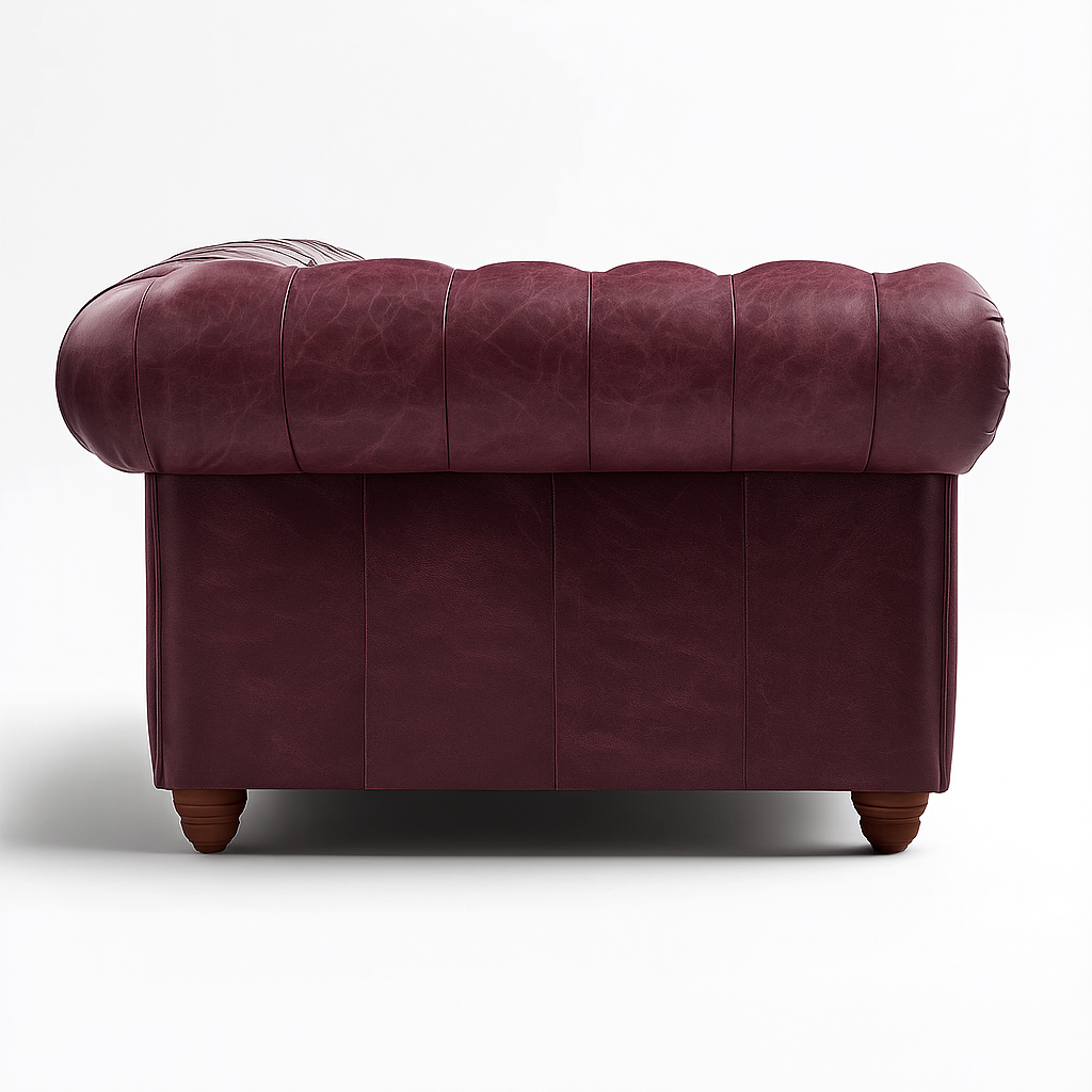 Upholstered in premium full-grain leather, each sofa is carefully hand-finished to enhance the leather’s natural depth and character. Over time, it develops a rich, individual patina—an unmistakable hallmark of authentic Chesterfield craftsmanship.