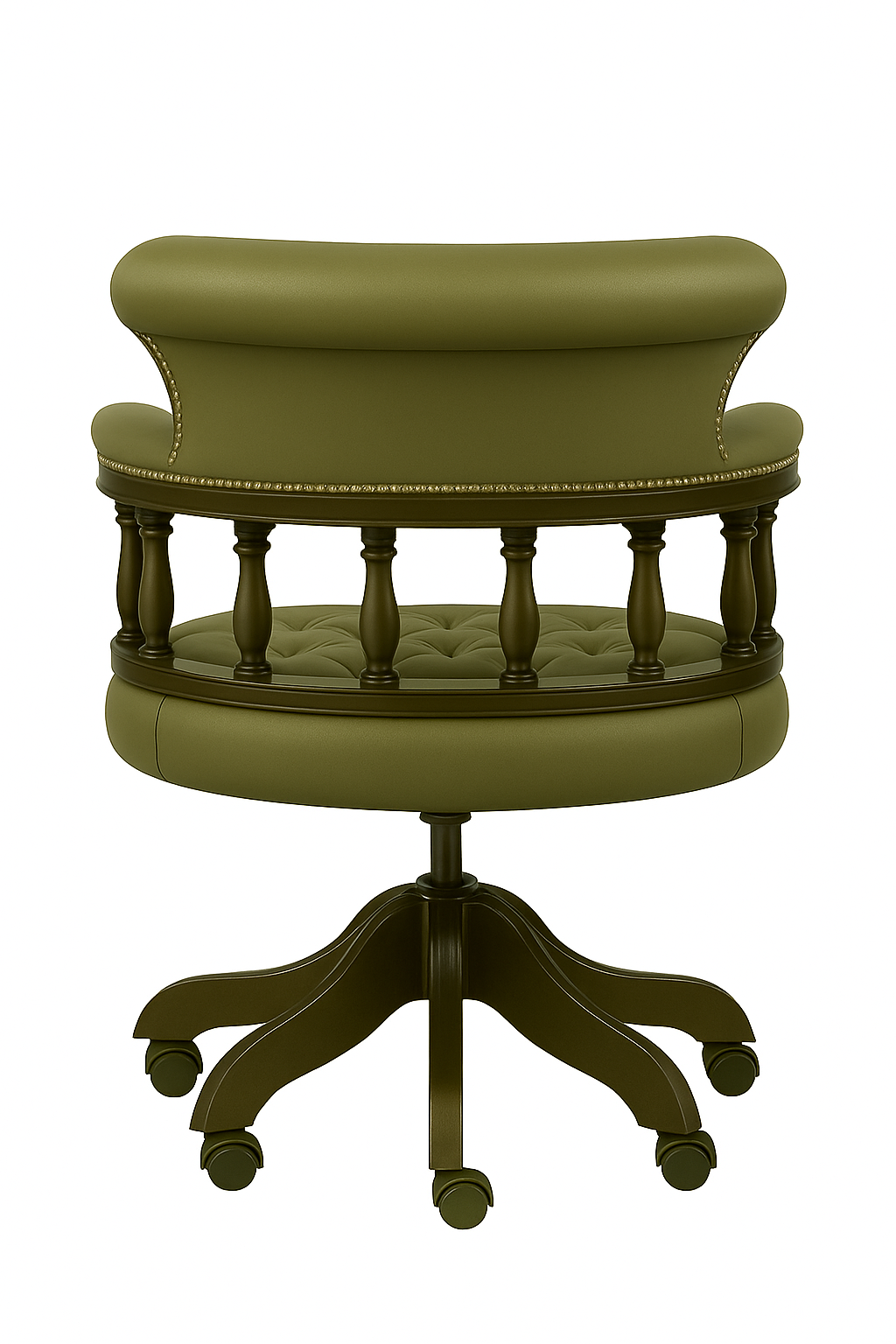A generously cushioned seat invites lasting comfort throughout the working day, supported by a solid hardwood frame built for strength, stability, and longevity. Beneath its stately silhouette, a smooth swivel base and discreet castors allow effortless movement, seamlessly blending practicality with poise.